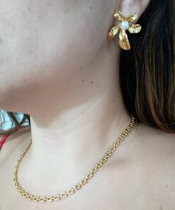 BRINCO FLOR COM PÉROLA – AÇO DOURADO