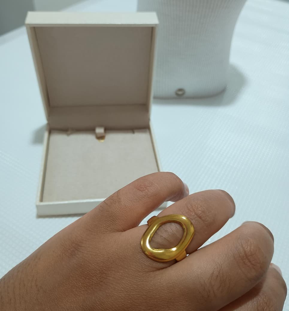 ANEL OVAL VAZADO – AÇO DOURADO.
