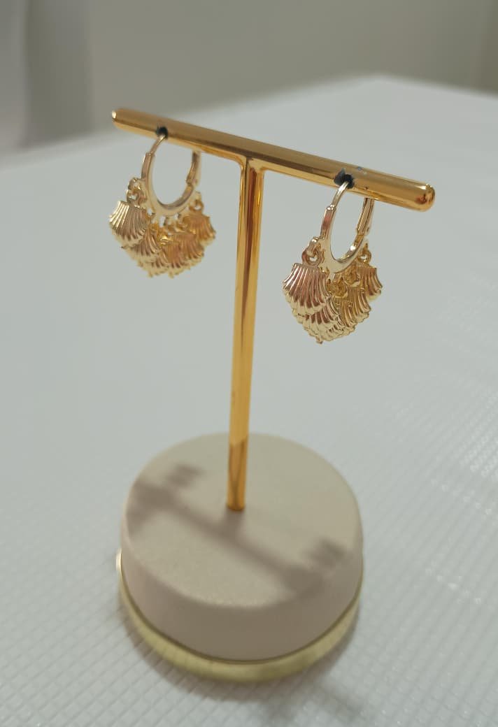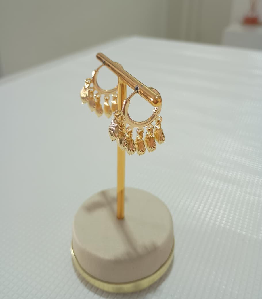 ARGOLINHA DE CLICK COM CONCHINHAS PENDURADAS BANHADA A OURO.