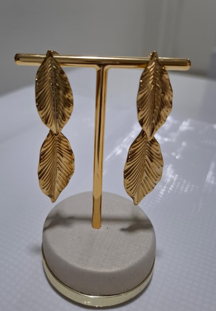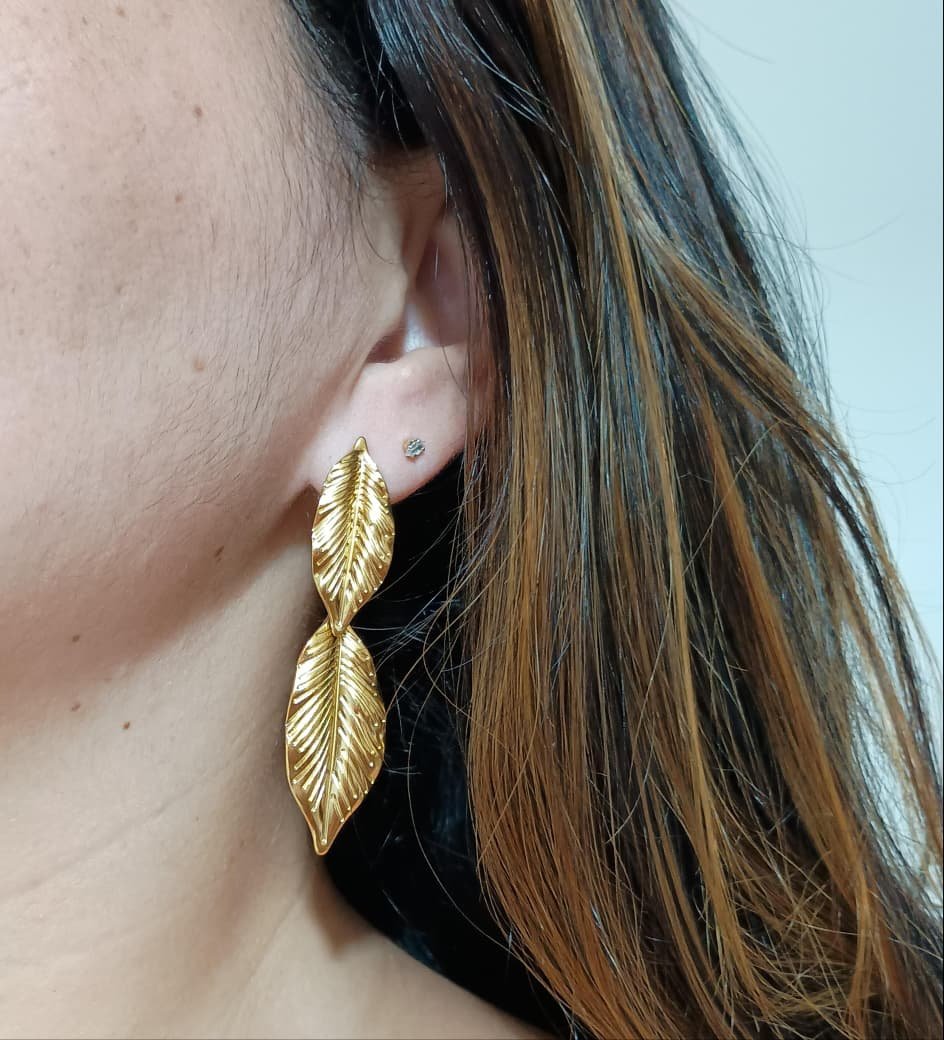 BRINCO FOLHAS EM AÇO INOXIDÁVEL DOURADO.