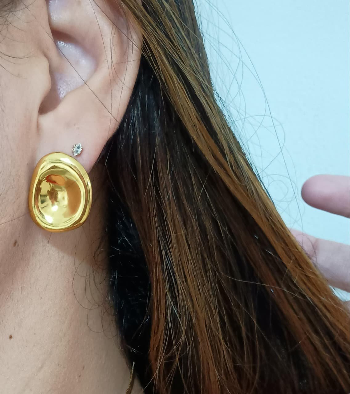 BRINCO OVAL EM AÇO INOXIDÁVEL DOURADO.