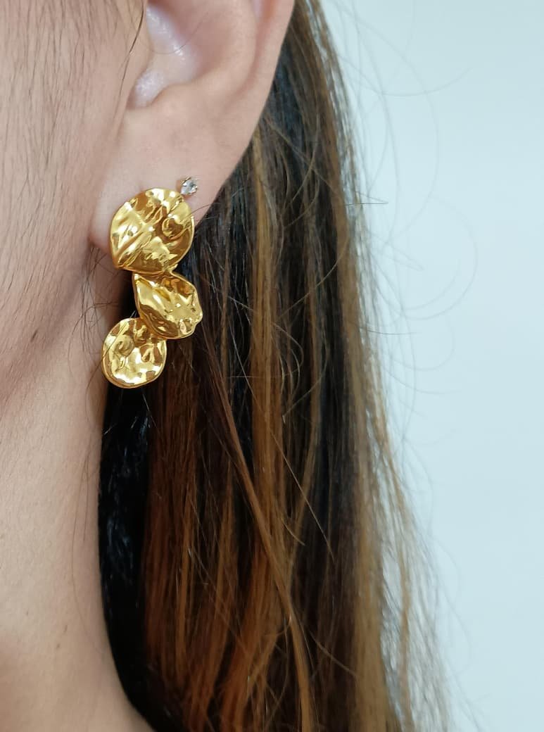 BRINCO PÉTALAS EM AÇO DOURADO.