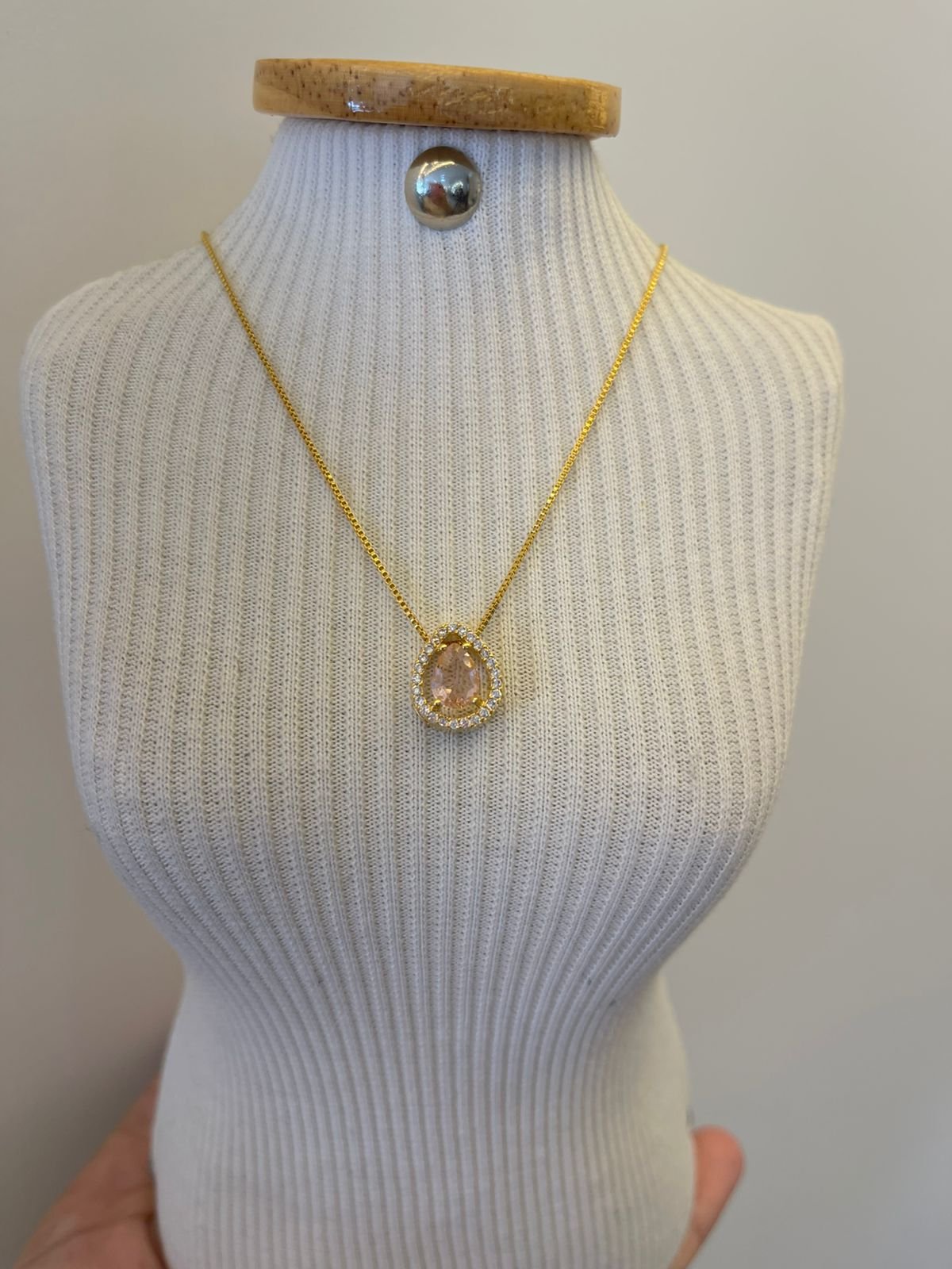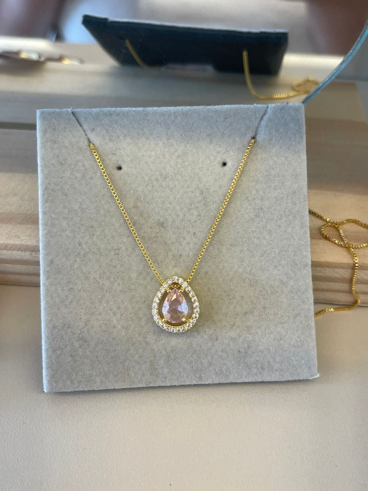 COLAR GOTA ROSA COM ZIRCÔNIAS- BANHO DE OURO.