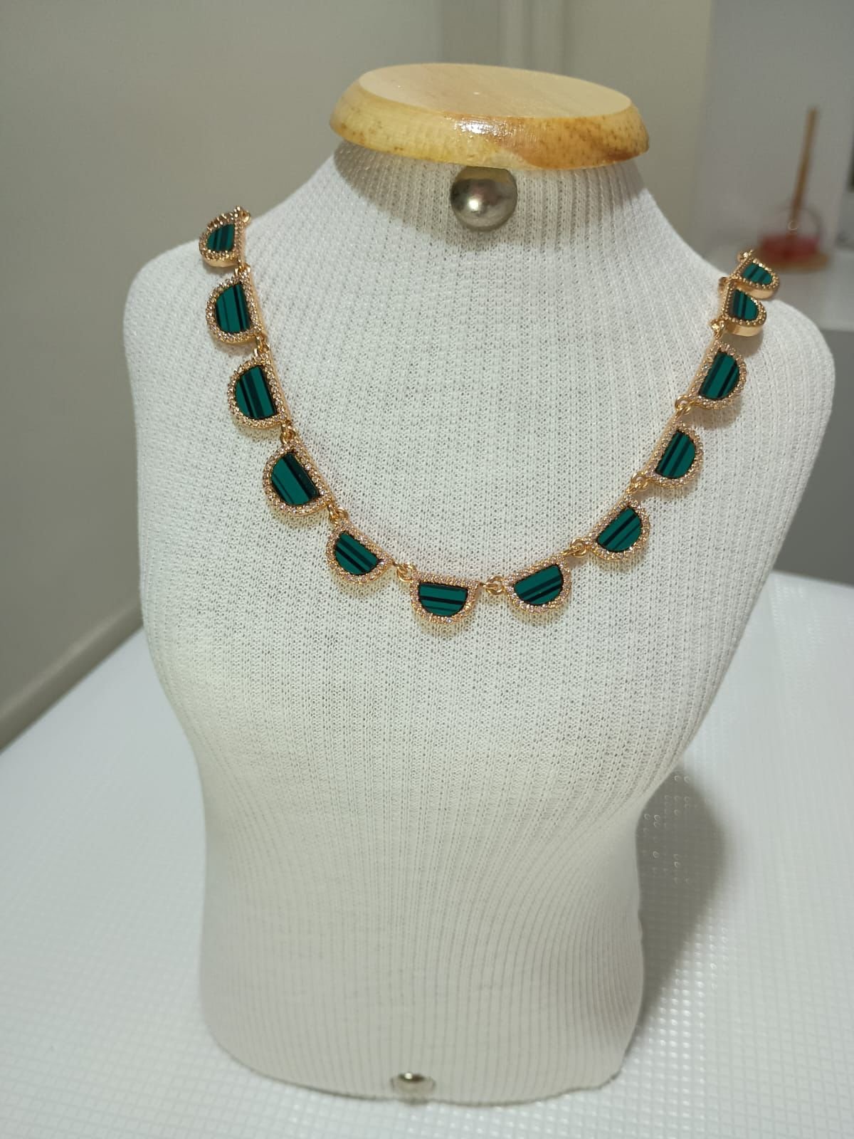 COLAR VERDE FESTA LUXO- BANHADO A OURO.